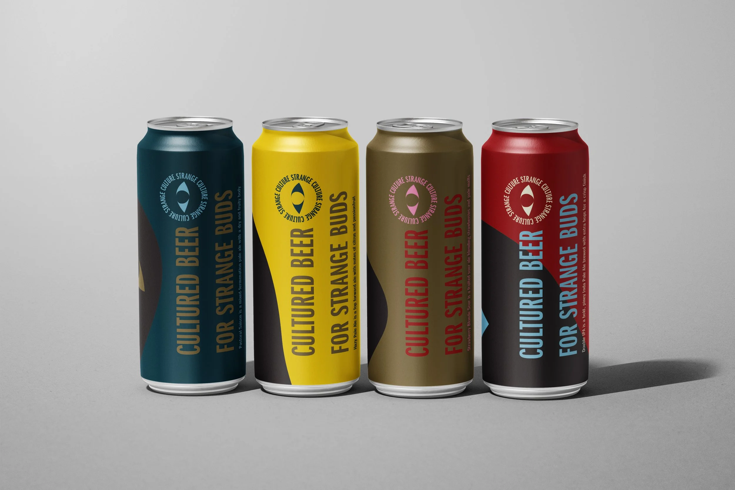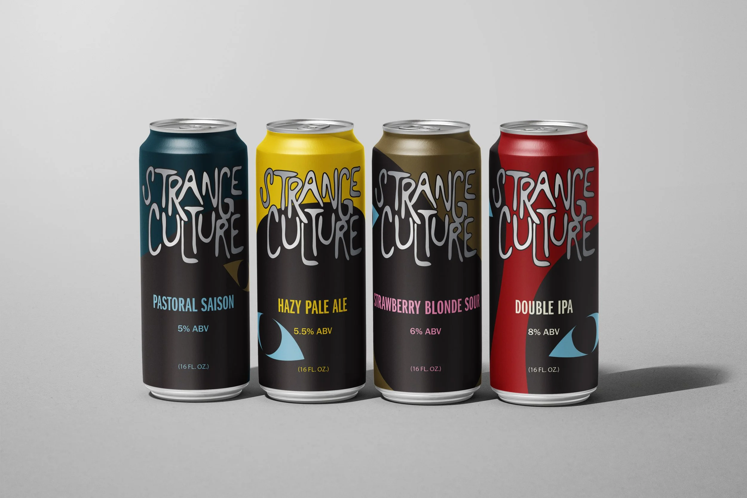 Strange Culture is a concept design for a micro brewery specializing in niche/experimental beers. The name is a bit of a play on words with “culture” referring to both society and the live cultures created in the brewing process. The use of a mascot works to unite a variety of packaging and branding assets. Playing into the name even further, the goal was to have the branding embody a “counter culture” aesthetic.